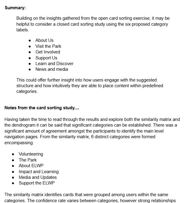 With a dedicated team of UX Researchers as part of the project, little research was conducted primarily by msyelf, I was, however, able to access the most recent Card Sorting Study results and provide some analysis and insights based upon my interpretation.